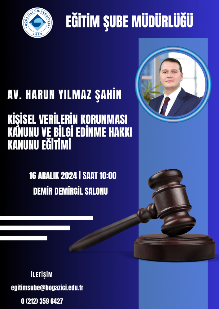 Within the framework of our university’s continuous development and training policies, we are pleased to invite you to the “Training on the Personal Data Protection Law (KVKK) and the Right to Information Act,” organized to enhance our knowledge and awareness of relevant legislation.