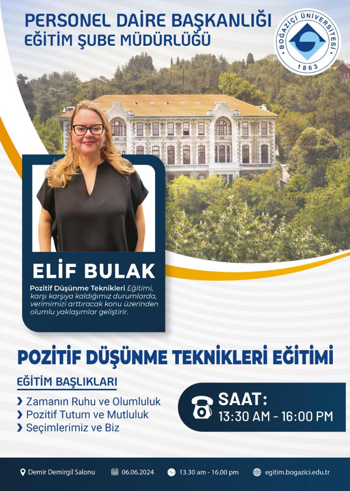 As part of the 2024 In-Service Training Program, the Training Branch Directorate of the Personnel Department of our University will organize a Positive Thinking Techniques Training.