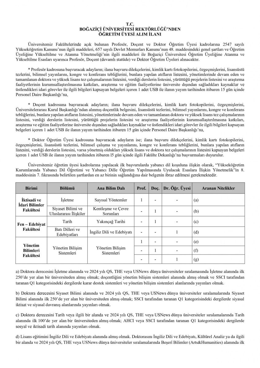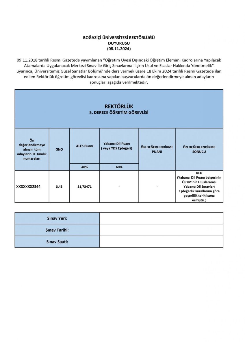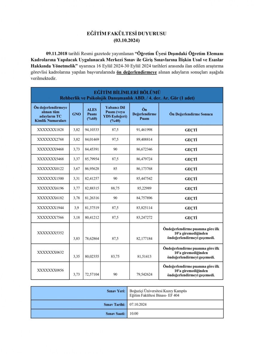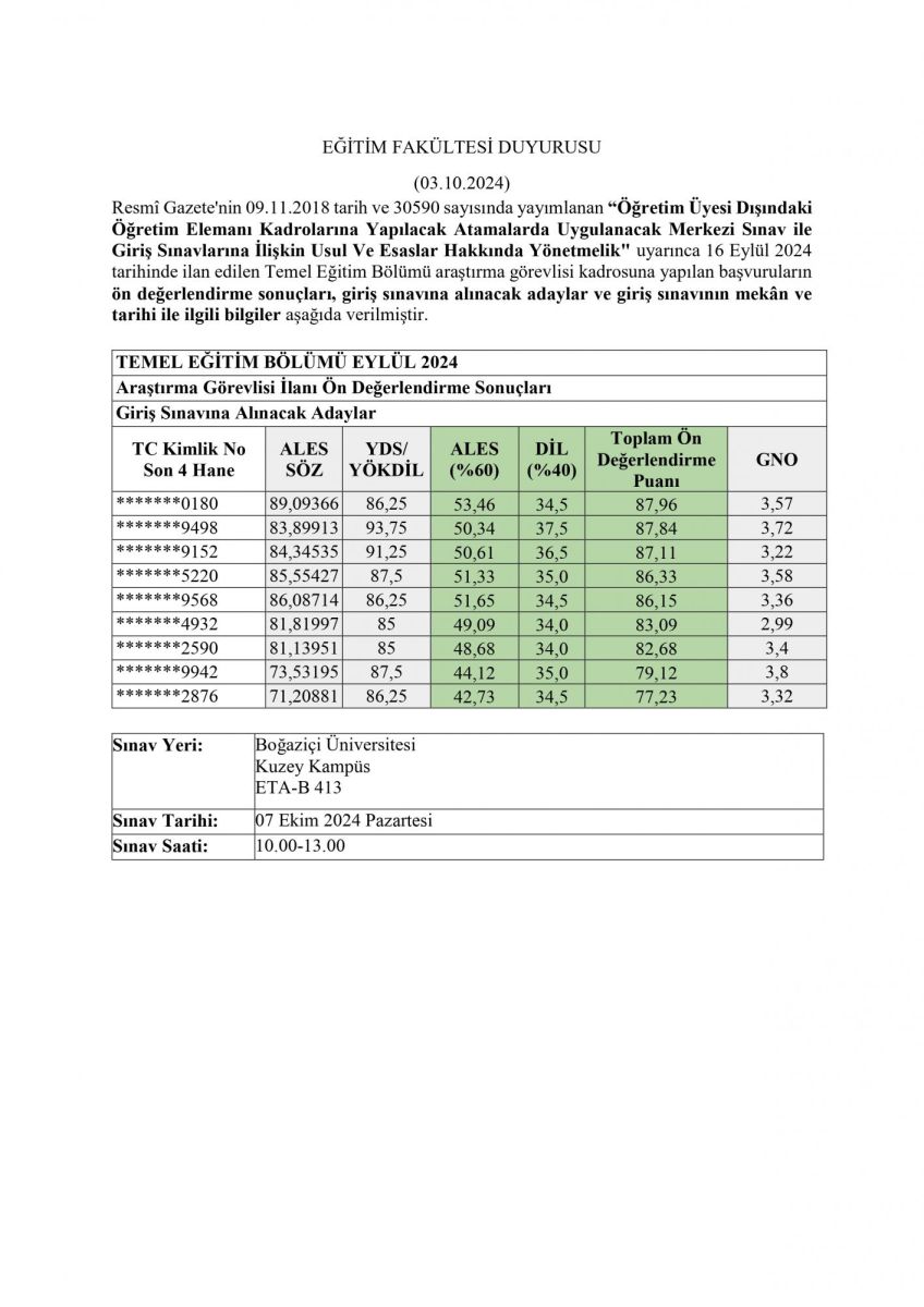Announcement of Research Assistant Position in the Department of Educational Sciences Preliminary Evaluation Results